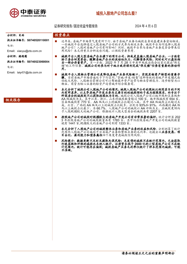 【中泰证券】【20240406】固定收益专题报告:城投入股地产公司怎么看?-15页