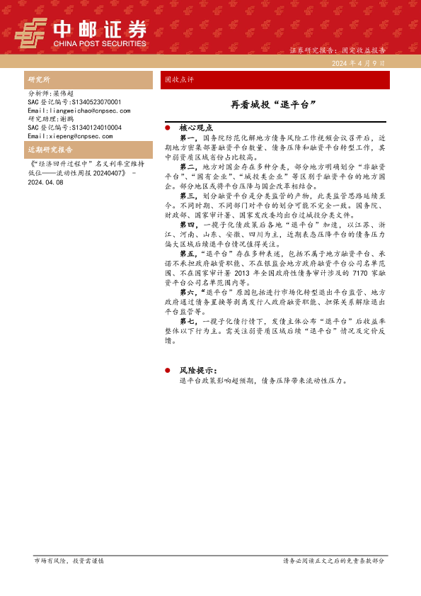 【中邮证券】【20240409】固收点评:再看城投“退平台”-14页