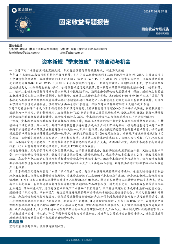 【国金证券】【20240407】固定收益专题报告:资本新规“季末效应”下的波动与机会-17页