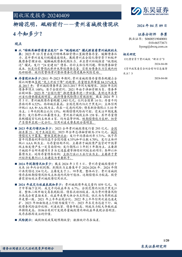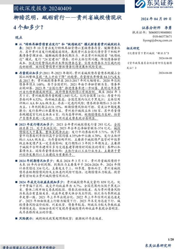 【东吴证券】【20240409】固收深度报告:柳暗花明,砥砺前行,贵州省城投债现状4个知多少?-20页