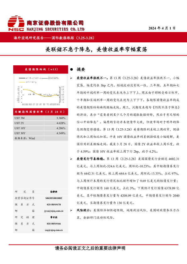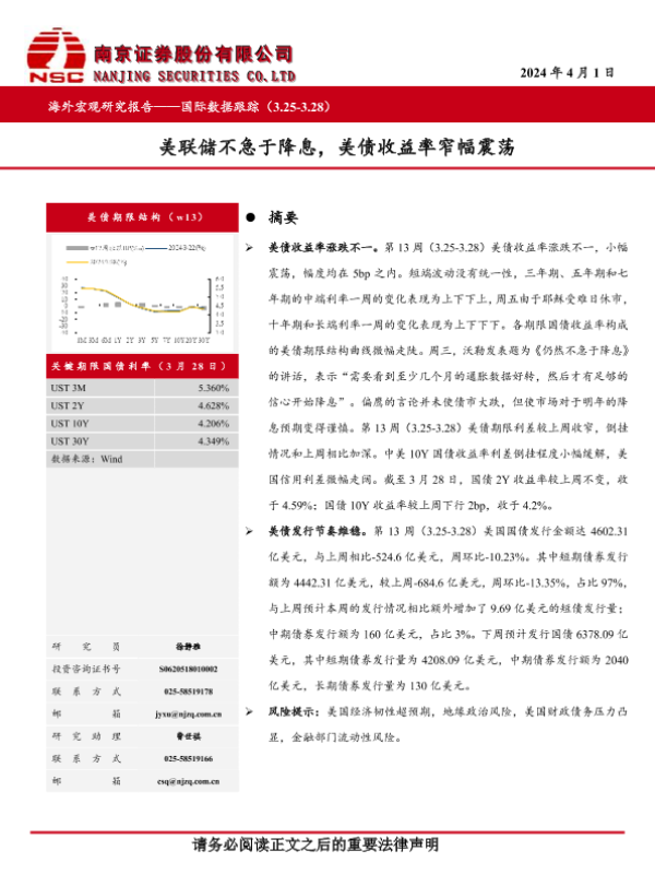 【南京证券】【20240401】国际数据跟踪:美联储不急于降息,美债收益率窄幅震荡-13页