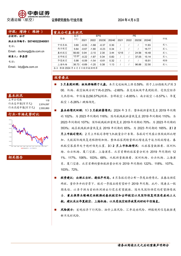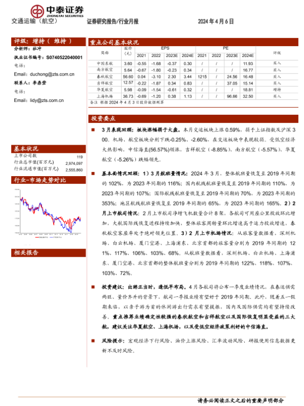 【中泰证券】【20240406】航空机场行业4月投资策略:出游正当时,逢低早布局-14页