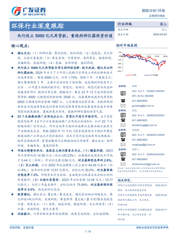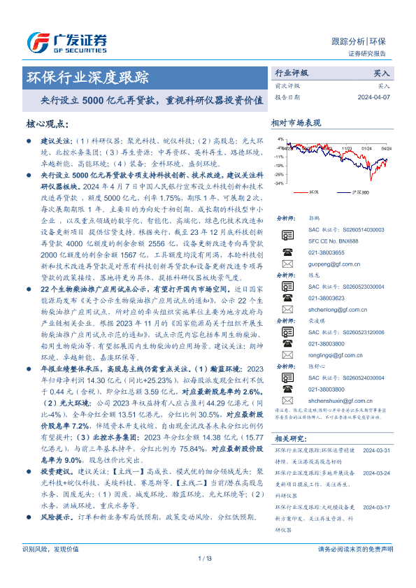【广发证券】【20240407】环保行业深度跟踪:央行设立5000亿元再贷款,重视科研仪器投资价值-13页