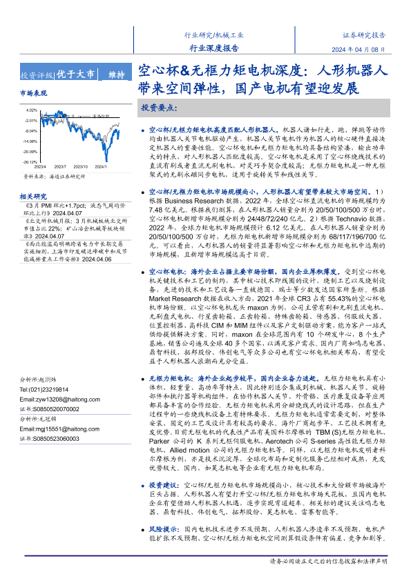 【海通证券】【20240408】机械工业行业深度报告-空心杯&无框力矩电机深度:人形机器人带来空间弹性,国产电机有望迎发展-23页