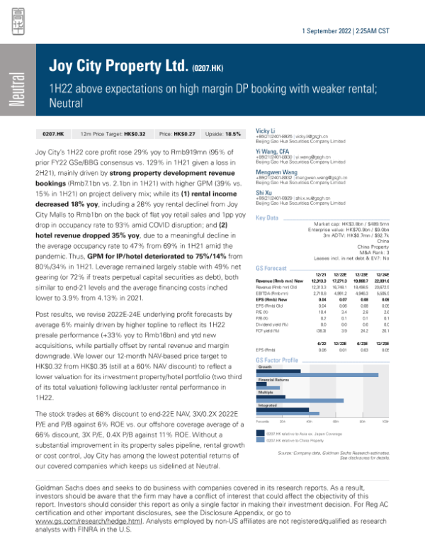 【Goldman Sachs】【20220901】H22 above expectations on high margin DP booking with weaker rental; Neutral-7页