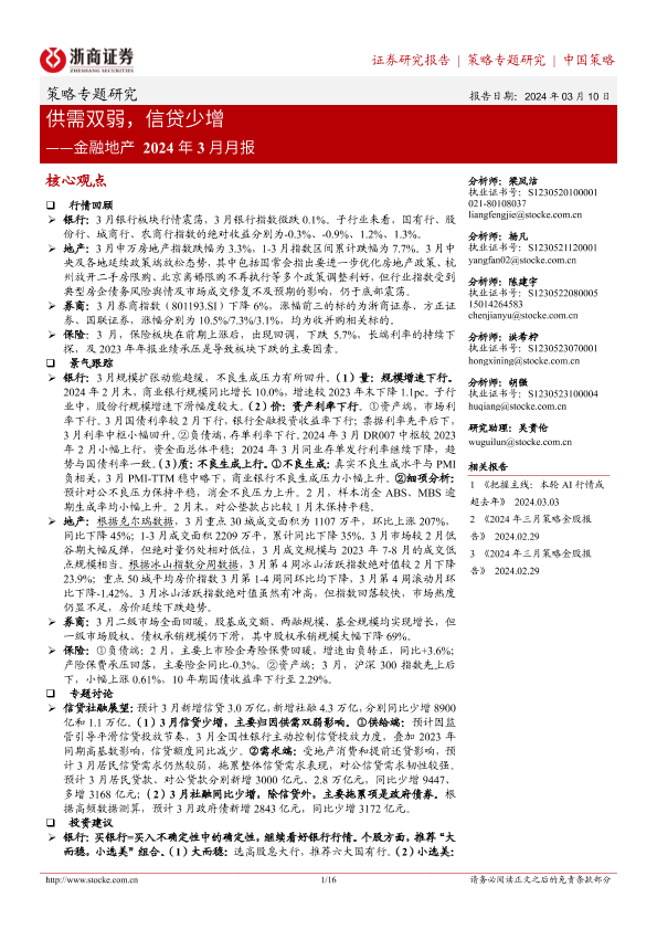 【浙商证券】【20240310】金融地产2024年3月月报:供需双弱,信贷少增-16页