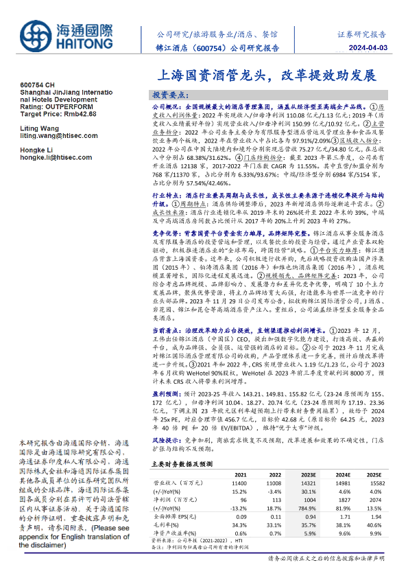 【海通国际】【20240307】锦江酒店-600754.SH-公司研究报告:上海国资酒管龙头,改革提效助发展-13页