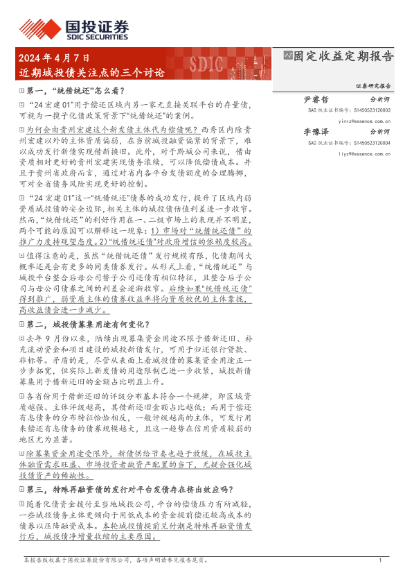【国投证券】【20240407】近期城投债关注点的三个讨论-15页