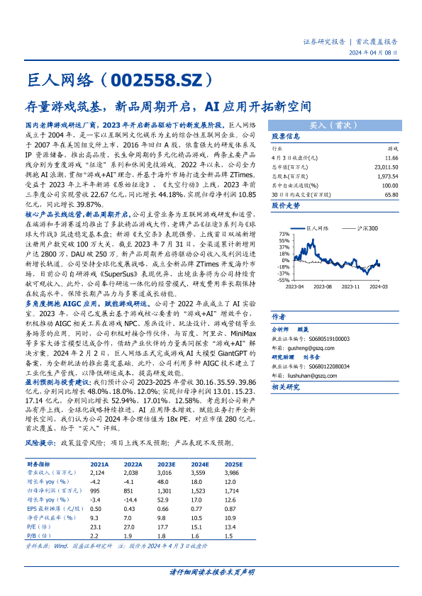 【国盛证券】【20240408】巨人网络-002558.SZ-存量游戏筑基,新品周期开启,AI应用开拓新空间-26页
