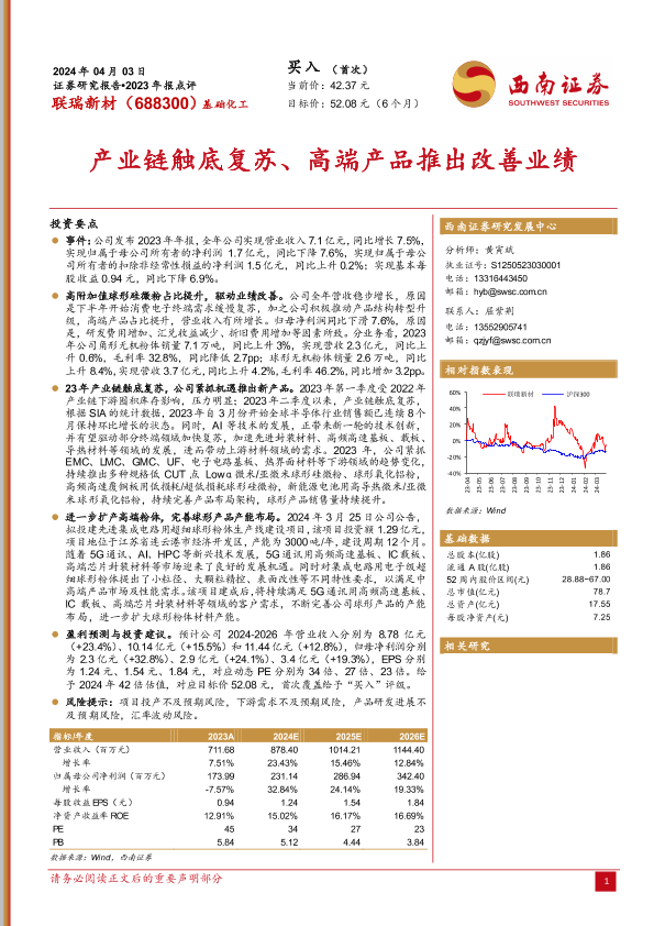 【西南证券】【20240403】联瑞新材-688300.SH-产业链触底复苏、高端产品推出改善业绩-12页
