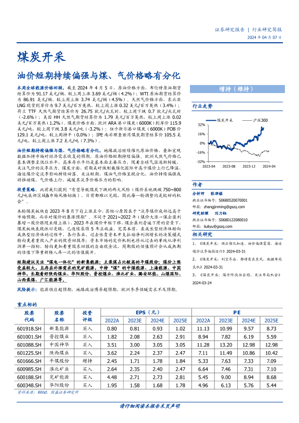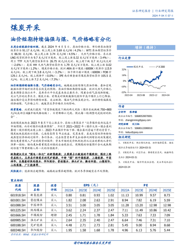 【国盛证券】【20240407】煤炭开采行业研究简报:油价短期持续偏强与煤、气价格略有分化-11页