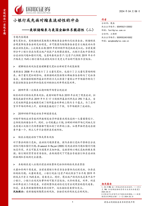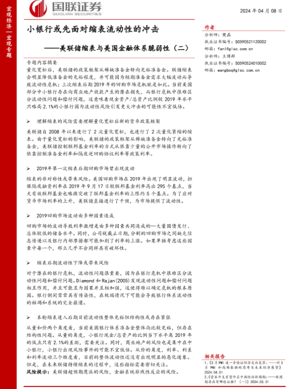 【国联证券】【20240408】美联储缩表与美国金融体系脆弱性(二):小银行或先面对缩表流动性的冲击-29页