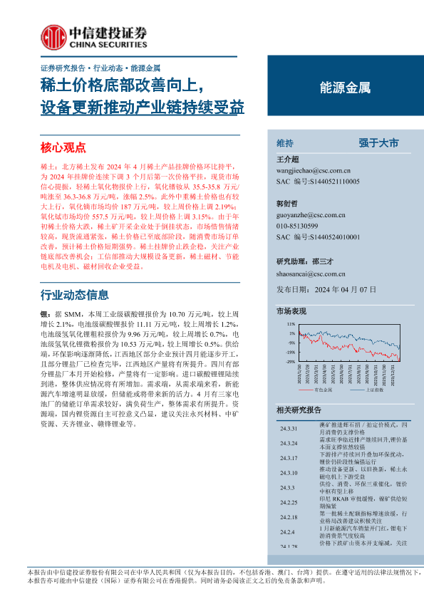 【中信建投证券】【20240407】能源金属行业:稀土价格底部改善向上,设备更新推动产业链持续受益-12页