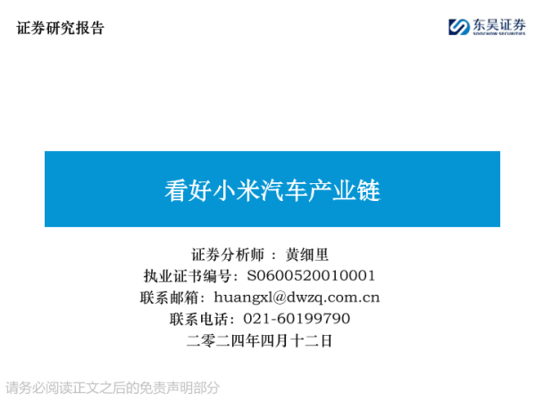 【东吴证券】【20240412】汽车行业:看好小米汽车产业链-16页