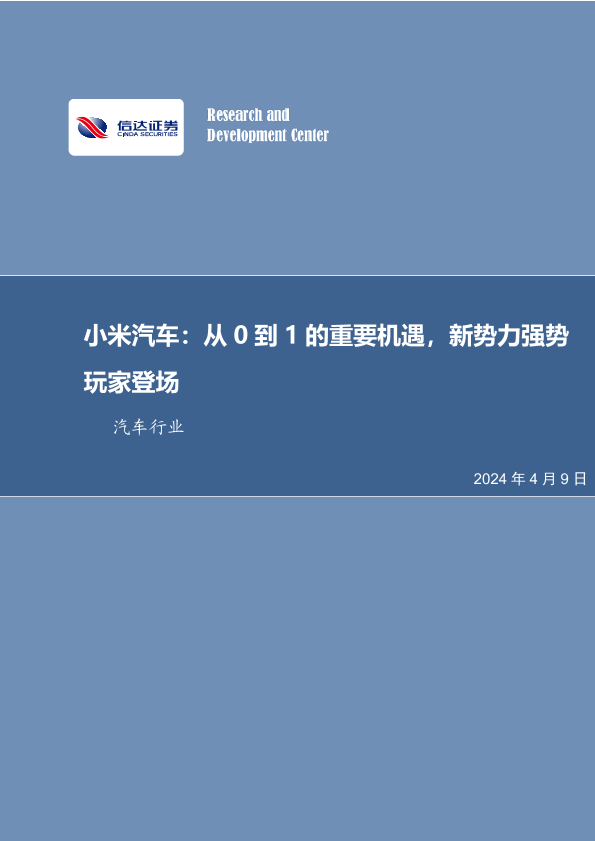 【信达证券】【20240409】汽车行业小米汽车:从0到1的重要机遇,新势力强势玩家登场-22页