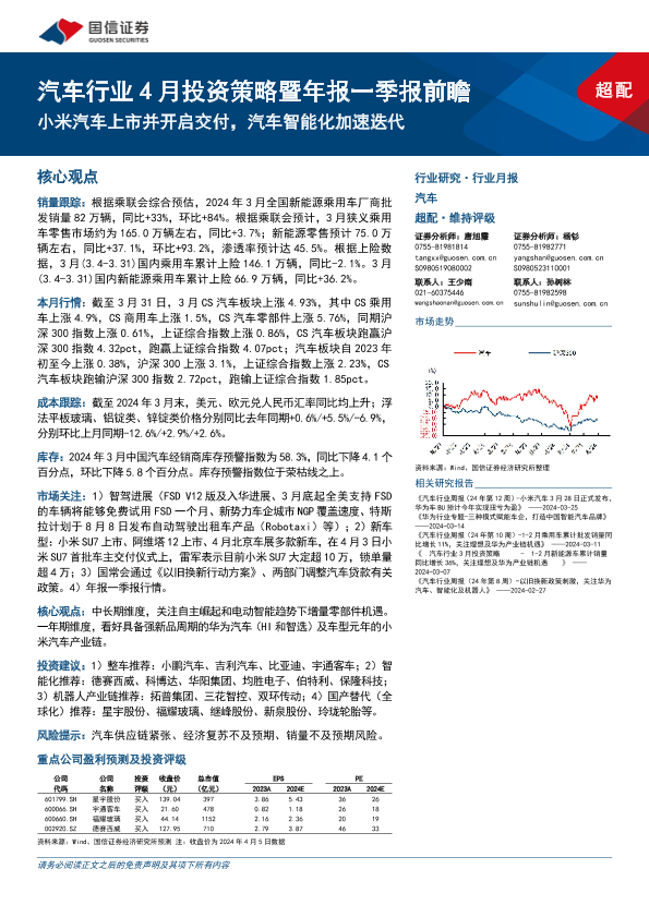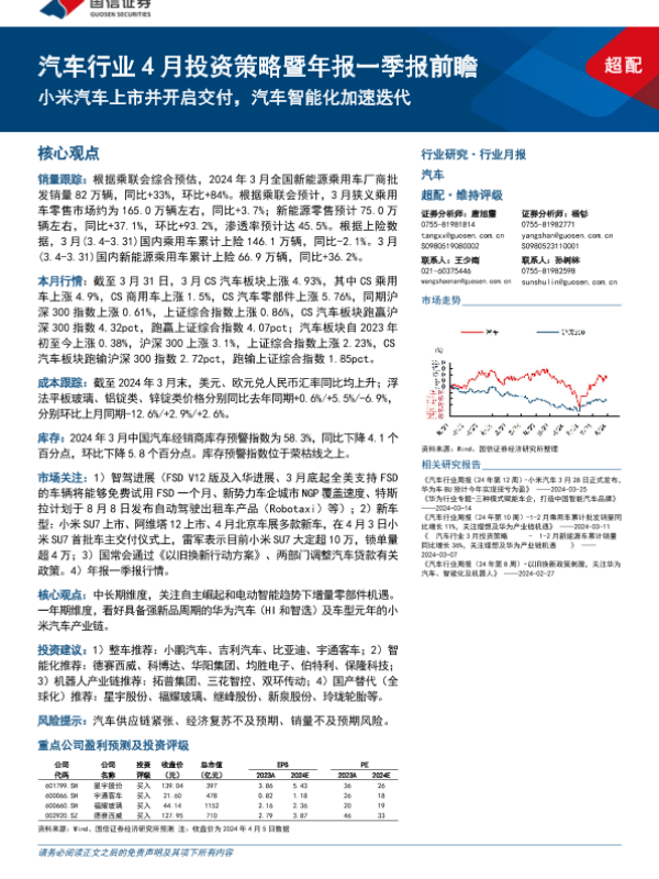 【国信证券】【20240407】汽车行业4月投资策略暨年报一季报前瞻:小米汽车上市并开启交付,汽车智能化加速迭代-36页