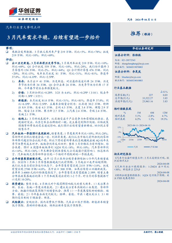 【华创证券】【20240411】汽车行业重大事项点评:3月汽车需求平稳,后续有望进一步抬升-14页
