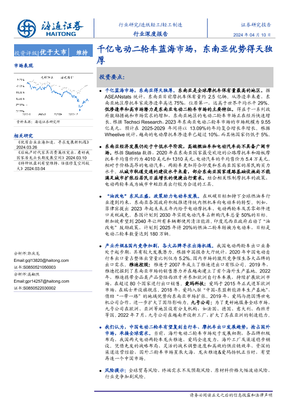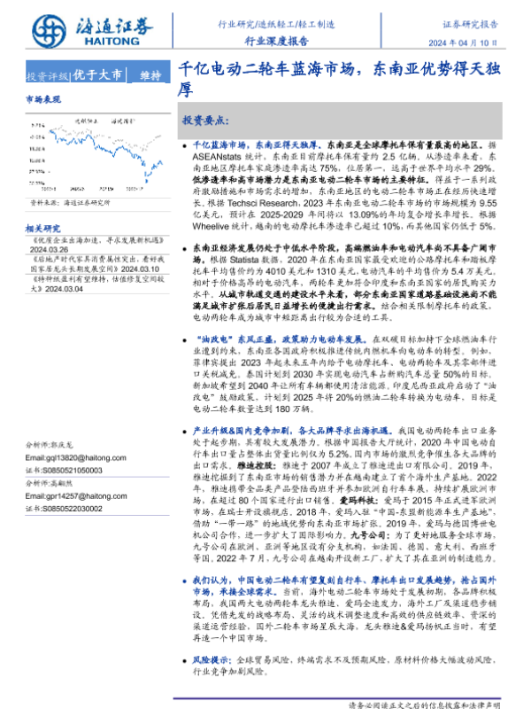 【海通证券】【20240410】轻工制造行业深度报告:千亿电动二轮车蓝海市场,东南亚条件得天独厚-18页