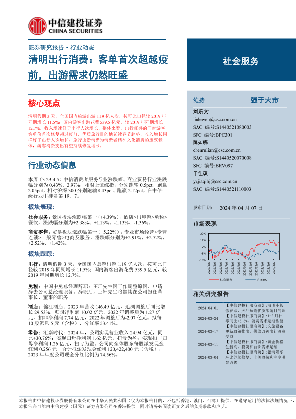 【中信建投证券】【20240407】社会服务行业动态:清明出行消费,客单首次超越疫前,出游需求仍然旺盛-33页