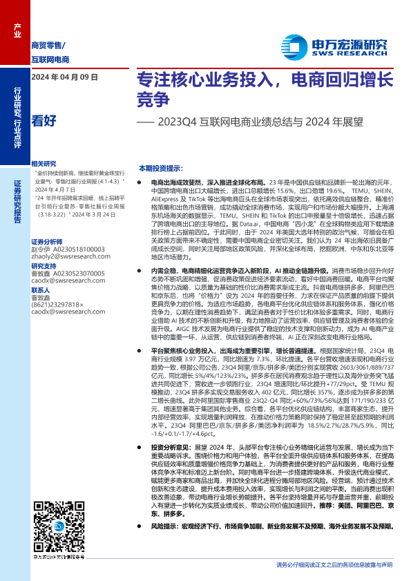 【申万宏源】【20240409】商贸零售行业2023Q4互联网电商业绩总结与2024年展望:专注核心业务投入,电商回归增长竞争-23页