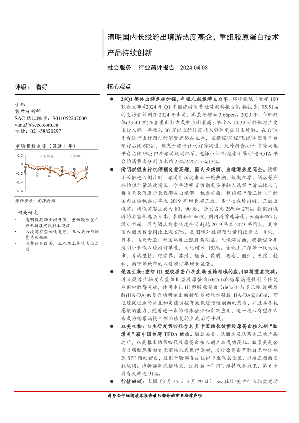 【首创证券】【20240408】社会服务行业简评报告:清明国内长线游出境游热度高企,重组胶原蛋白技术产品持续创新-13页