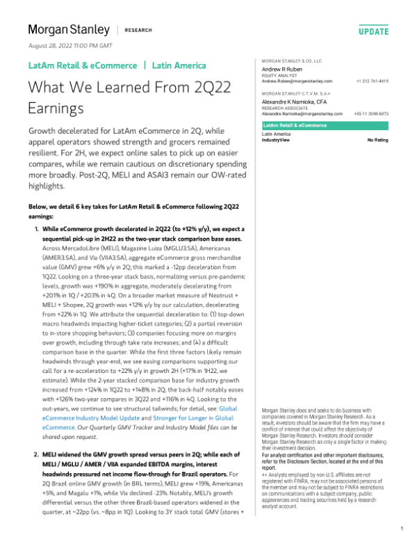 【Morgan Stanley】【20220828】Stanley-LatAm Retail & eCommerce What We Learned From 2Q22 Earnings-24页