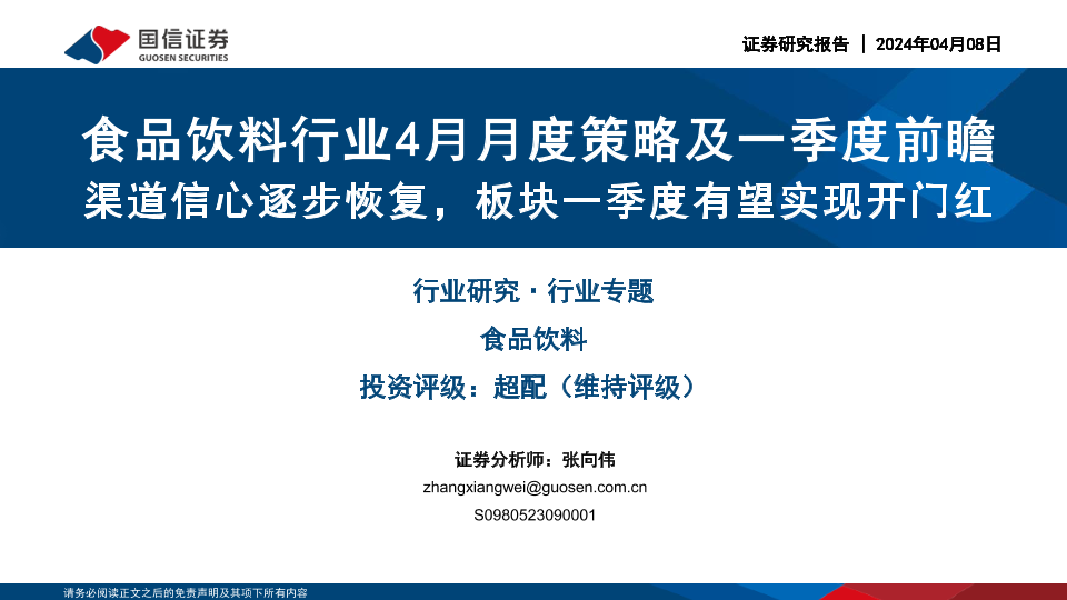 【国信证券】【20240408】食品饮料行业4月月度策略及一季度前瞻:渠道信心逐步恢复,板块一季度有望实现开门红-29页