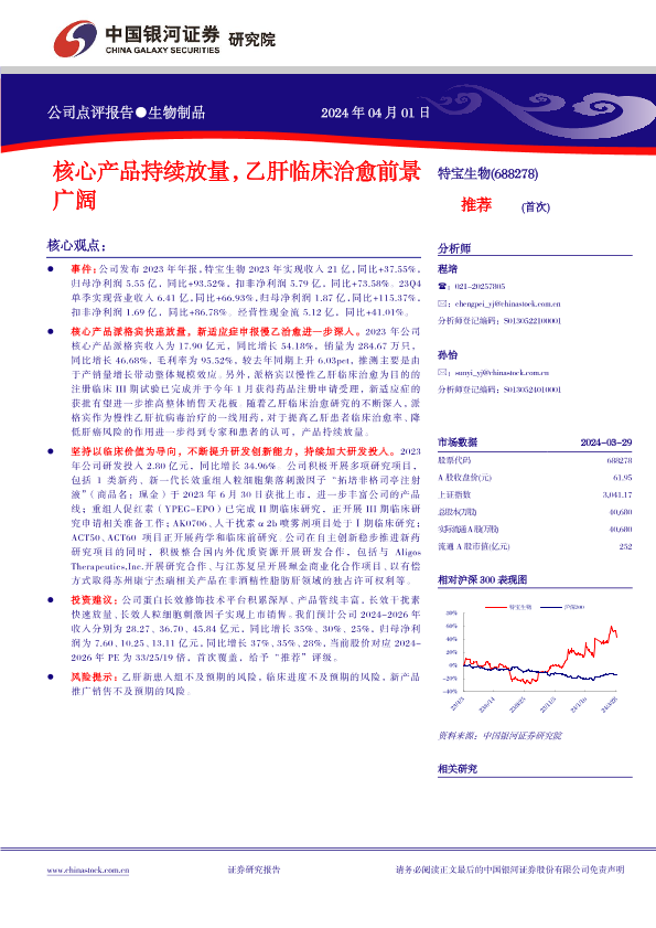 【银河证券】【20240401】特宝生物-核心产品持续放量,乙肝临床治愈前景广阔-14页