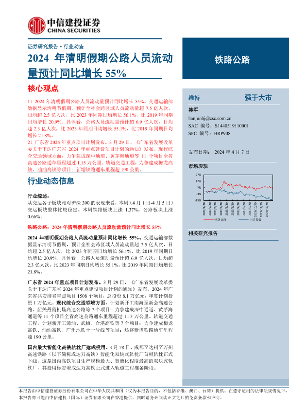 【中信建投证券】【20240407】铁路公路行业:2024年清明假期公路人员流动量预计同比增长55%-17页
