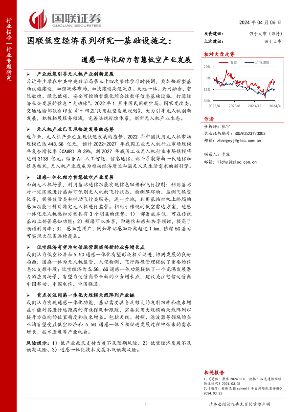 【国联证券】【20240406】通信行业国联低空经济系列研究-基础设施之:通感一体化助力智慧低空产业发展-10页