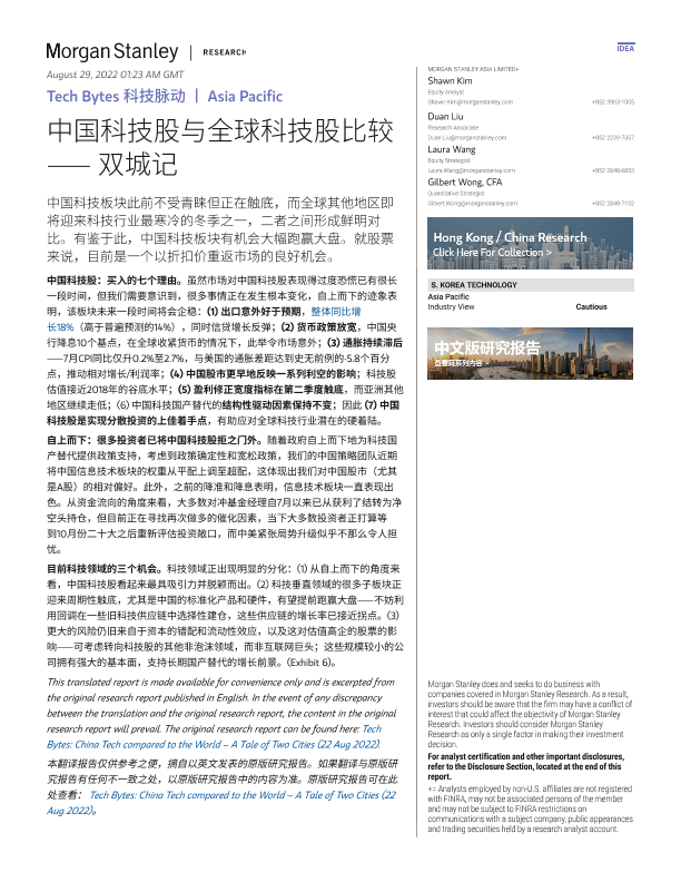 【Morgan Stanley】【20220822】中国科技股与全球科技股比较——双城记-12页
