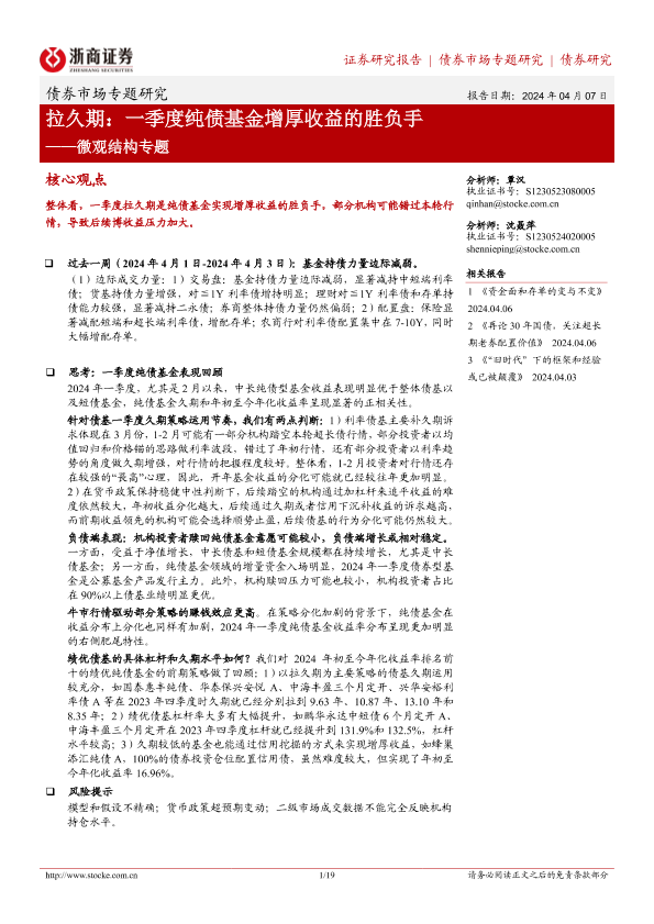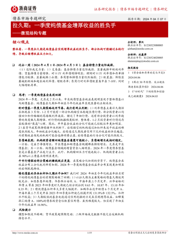 【浙商证券】【20240407】拉久期:一季度纯债基金增厚收益的胜负手——微观结构专题-19页