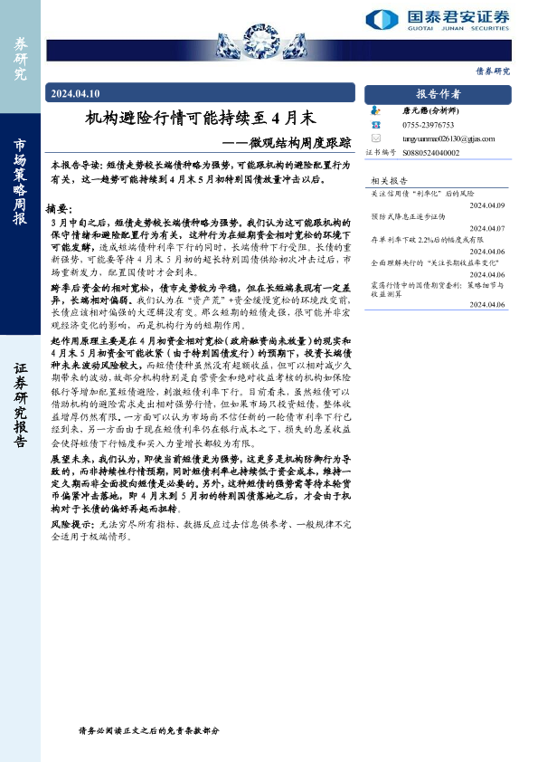 【国泰君安证券】【20240410】微观结构跟踪:机构避险行情可能持续至4月末-13页