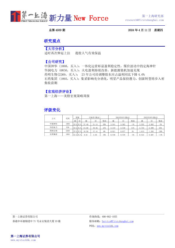 公司研究 医药生物 港股分析 电力能源 金融策略