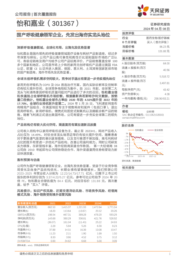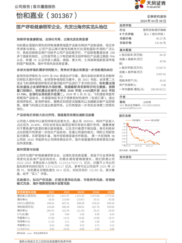 【天风证券】【20240408】怡和嘉业-国产呼吸健康领军企业,先发出海夯实龙头地位-21页