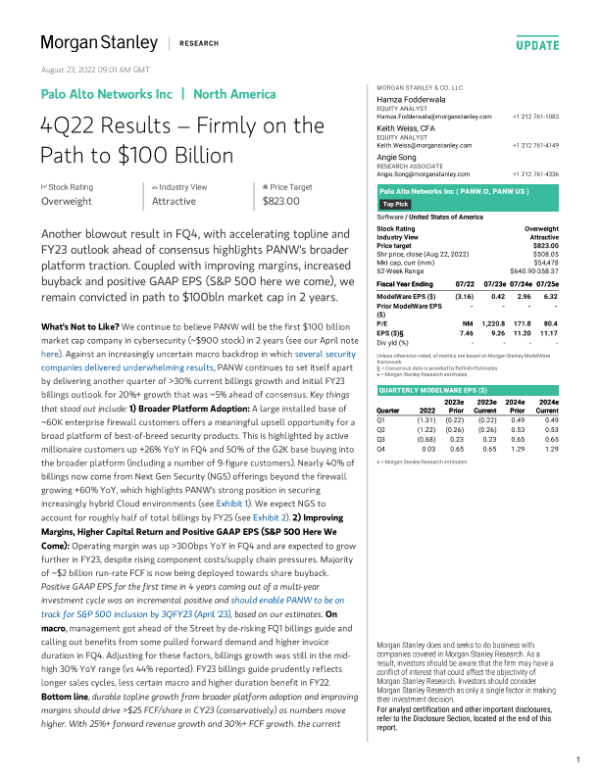 【Morgan Stanley】【20220823】Q-Morgan Stanley-Palo Alto Networks Inc 4Q22 Results – Firmly on the Path to-15页