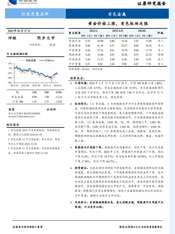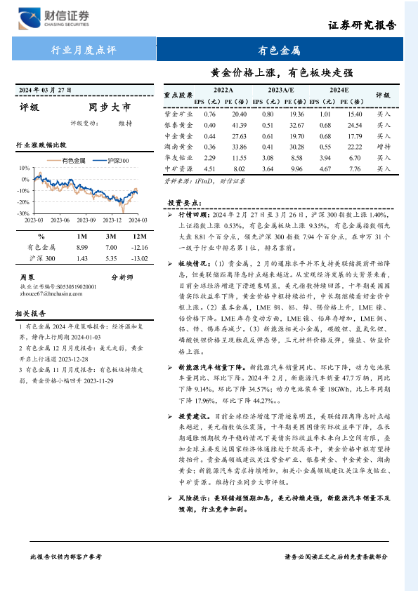 【财信证券】【20240327】有色金属行业:黄金价格上涨,有色板块走强-16页