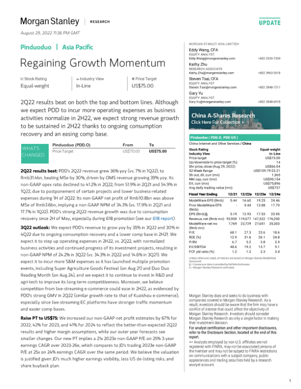 【Morgan Stanley】【20220829】Pinduoduo Regaining Growth Momentum-11页