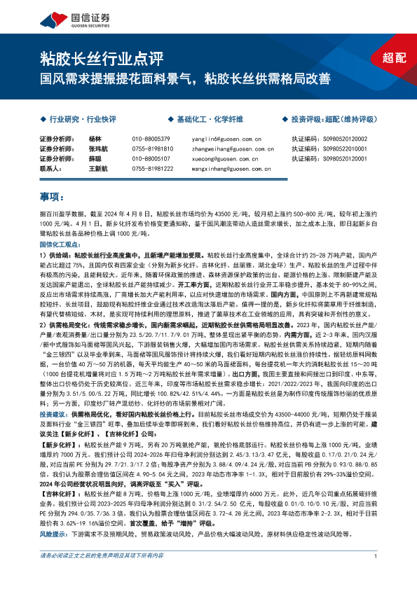【国信证券】【20240409】粘胶长丝行业点评:国风需求提振提花面料景气,粘胶长丝供需格局改善-16页
