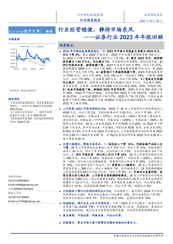 【海通证券】【20240406】证券行业2023年年报回顾:行业经营稳健,静待市场东风-21页