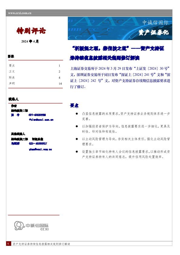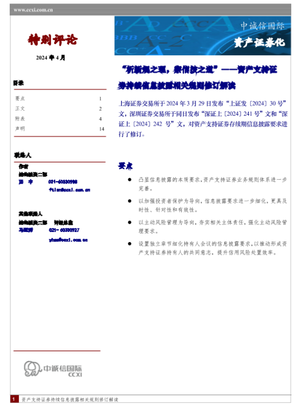 【中诚信国际】【202404】资产支持证券持续信息披露相关规则修订解读:“析新规之理,察信披之道”-14页