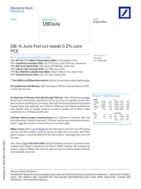【Deutsche Bank】【20240409】DBDaily DB A June Fed cut needs 0.2 core PCE-14页