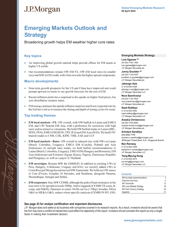 【J.P. Morgan】【20240408】FI-Emerging Markets Outlook and Strategy Broadening growth helps EM weather higher core rates-49页