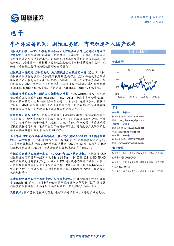 【国盛证券】【20210706】电子行业半导体设备系列:刻蚀主赛道,有望加速导入国产设备-22页
