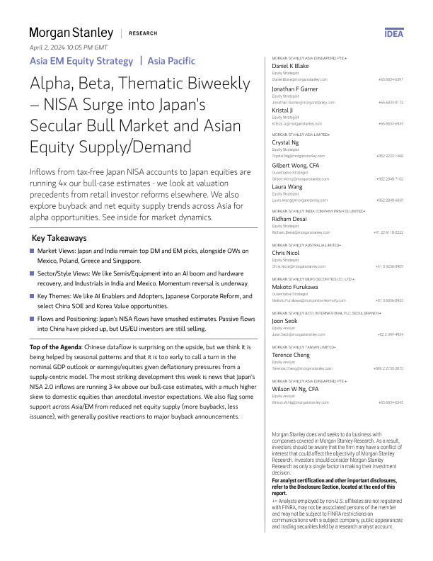 【Morgan Stanley】【2023】ley-Asia EM Equity Strategy Alpha, Beta, Thematic Biweekly – NISA Surge into Japan's Secular Bull Market and Asian Equity Supply/Demand-82页