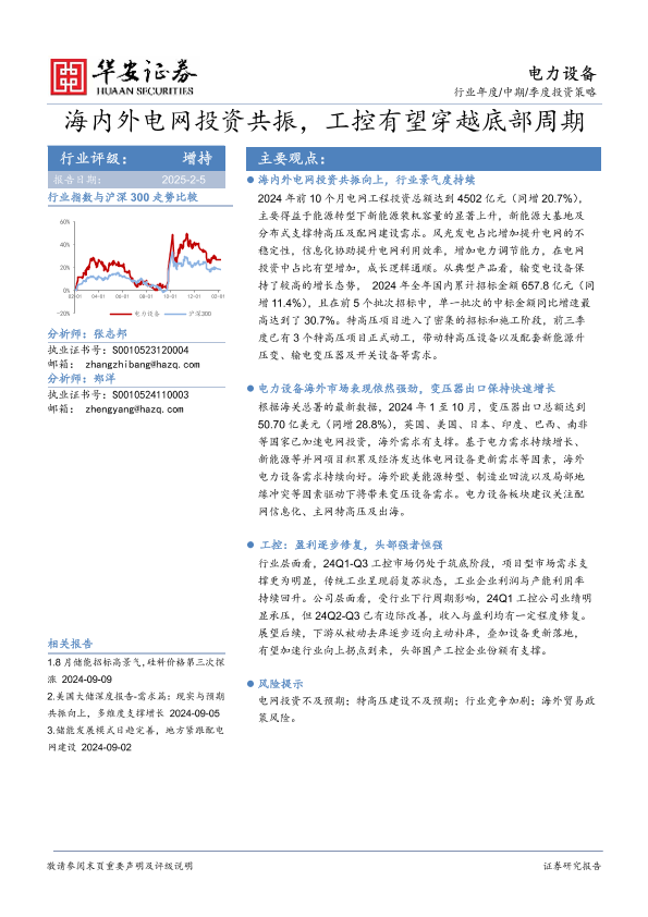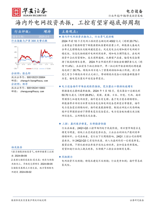 【华安证券】【20250205】电力设备行业年度 中期 季度投资策略:海内外电网投资共振,工控有望穿越底部周期-25页