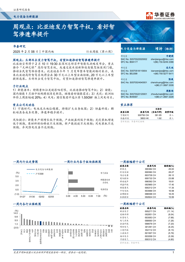【华泰证券】【20250208】电力设备与新能源周观点:比亚迪发力智驾平权,看好智驾渗透率提升-16页