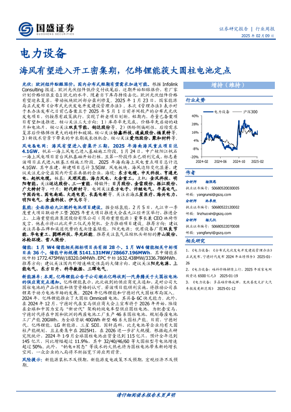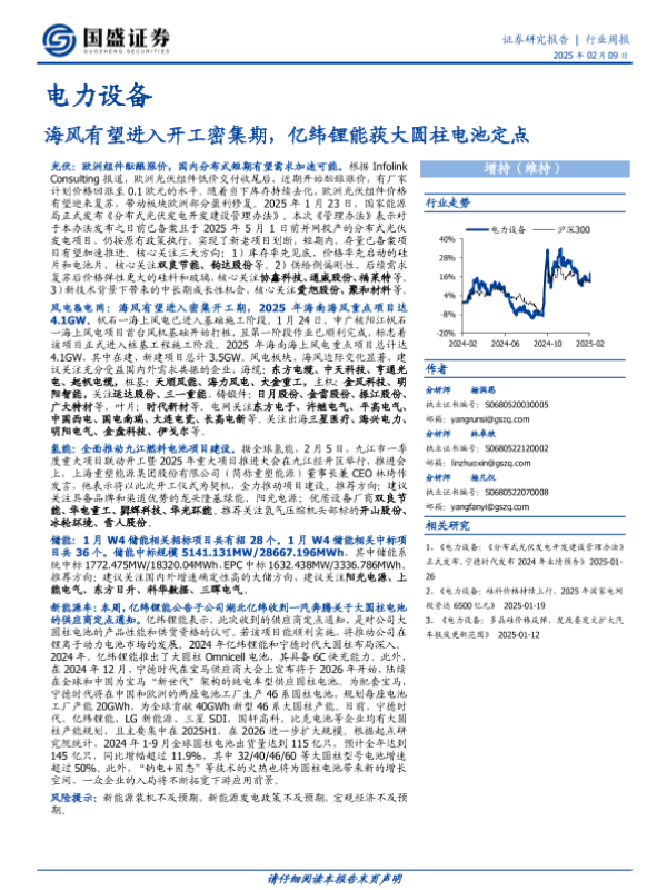 【国盛证券】【20250209】电力设备行业周报:海风有望进入开工密集期,亿纬锂能获大圆柱电池定点-15页