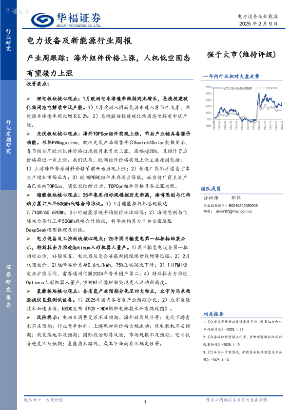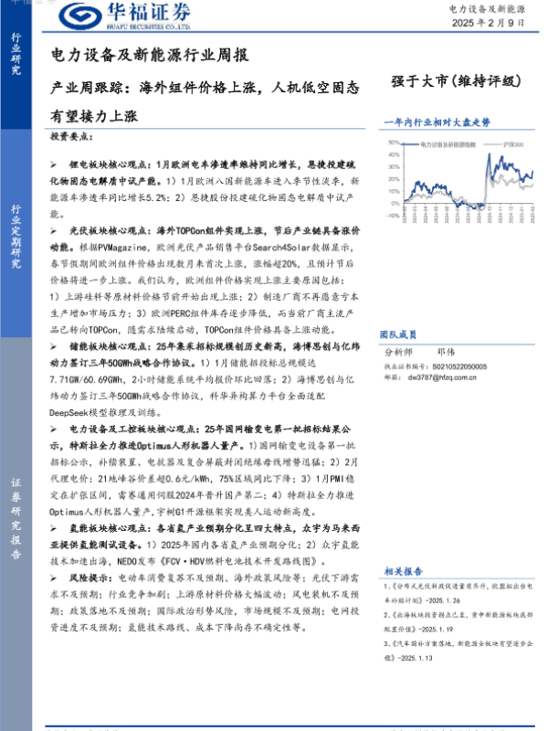 【华福证券】【20250209】电力设备及新能源行业周报:产业周跟踪:海外组件价格上涨,人机低空固态有望接力上涨-14页