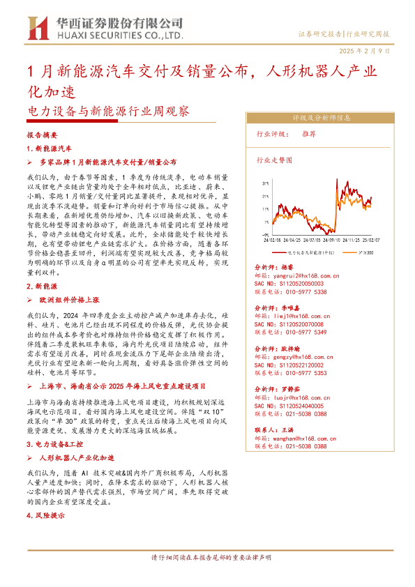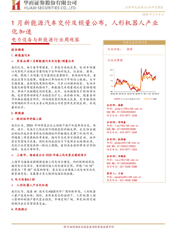 【华西证券】【20250209】电力设备与新能源行业周观察:1月新能源汽车交付及销量公布,人形机器人产业化加速-24页